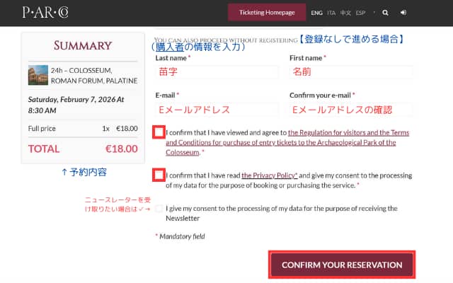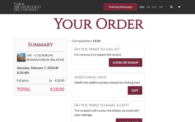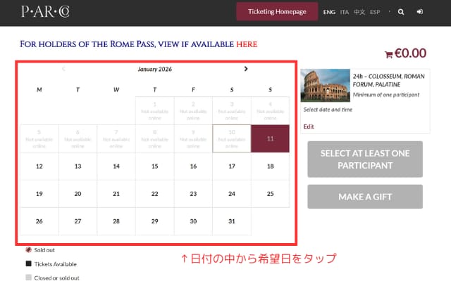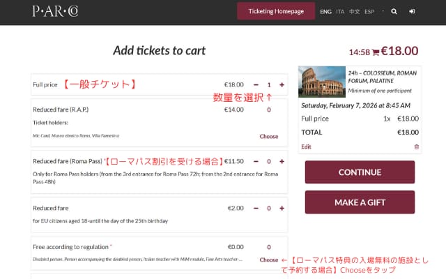 Ciao!今回は、コロッセオ見学チケットの予約&購入方法です。英語表記Verでお送りします。