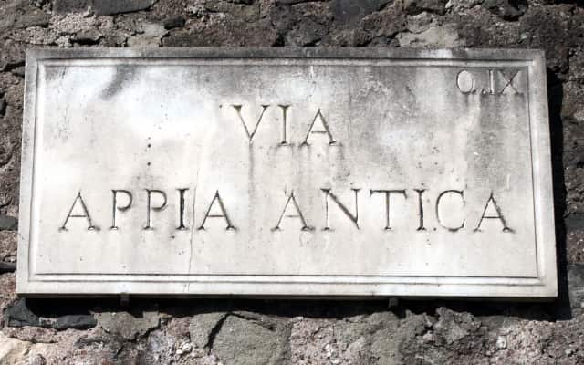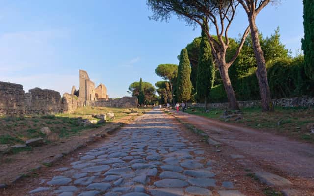 アッピア街道(Via Appia)とは、古代ローマ時代に造られた主要様な街道(ローマ街道)のひとつ。ローマからブリンディジまでを結ぶ街道です。1784年に新しいアッピア街道が作られたことから、古代からの道をアッピア旧街道(Via Appia Antica)と呼ぶようになりました。ローマ近郊では、ローマ市街を分ける城壁・サン・セバスティアーノ門~チャンピーノ空港付近までのあたりがアッピア旧街道国立公園として整備されています。