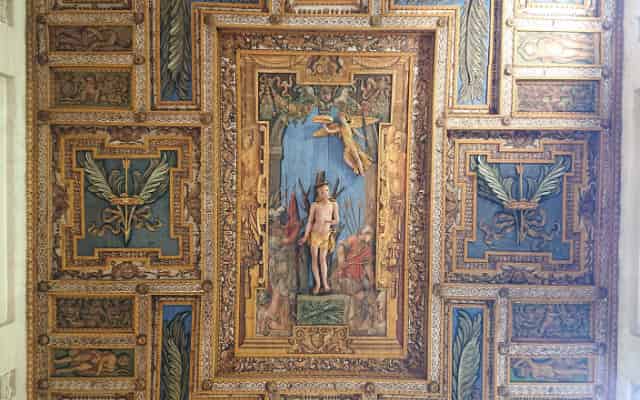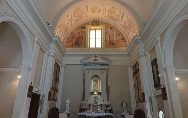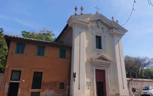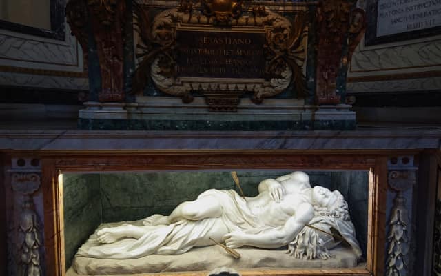 聖セバスティアーノ(聖セバスティアヌス)を祀る聖堂。聖セバスティアーノは古代ローマ時代の殉教者で、絵画などでは柱に縛られて弓矢でいられている姿で描かれています。現在彼の墓所はこちらにあります。
