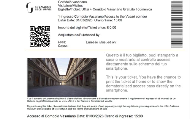 • 入場無料日など、美術館入場に時間がかかる日はヴァザーリの回廊予約者用のファストレーンあり