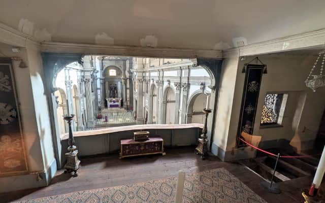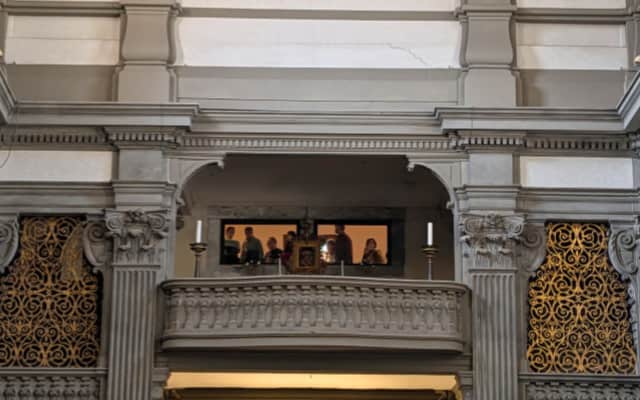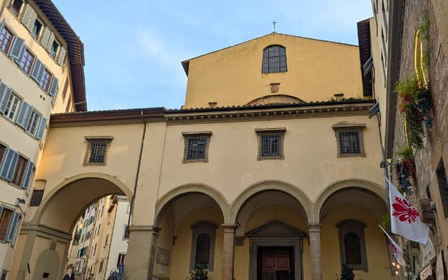 最初の設立はローマ時代に遡る、フィレンツェ市内で最も古い教会のひとつ。ヴァザーリの回廊の途中に位置し、回廊から教会内の2階のテラス部分に降りてミサに参加することもできていたそうです。