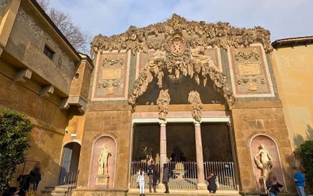 ボーボリ庭園の中にある人口の洞窟。ボーボリ庭園とピッティ宮殿に水を供給する水道橋を基に、計画は1551年ダヴィデ・フォルティーニや1557年ジョルジョ・ヴァザーリなどの手に引き継がれました。最終的には、1587年にかけてベルナルド・ブオンタレンティが現在のような洞窟に改造する工事を指揮し、ヴァザーリの建築設計に基づいて、装飾部分全体の設計と施工を行いました。