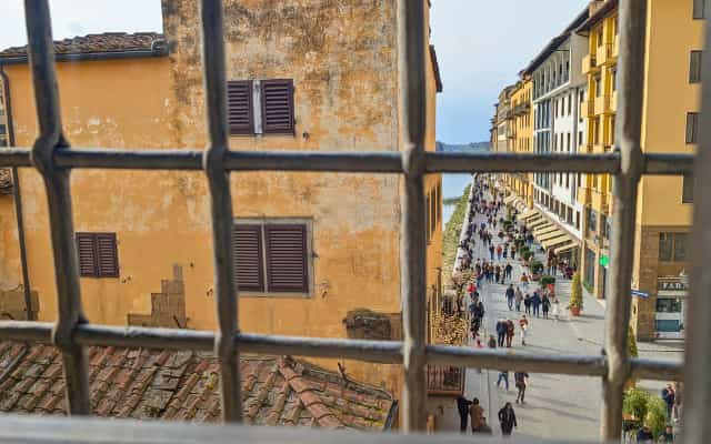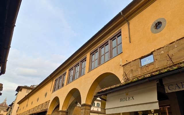 回廊はヴェッキオ橋の上部部分を通っています。いつもと違ったフィレンツェの写真を撮ることができる人気のスポット!