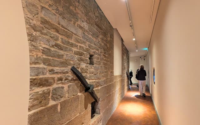 計画では直線的な通路にする予定で塔を壊すことが計画されていました。しかし、当時の塔の所有者が壊すことを拒否したため、最終的には、回廊は一部が曲がった造りになったそうです。現在でも、回廊内で塔の一部を見ることができます。